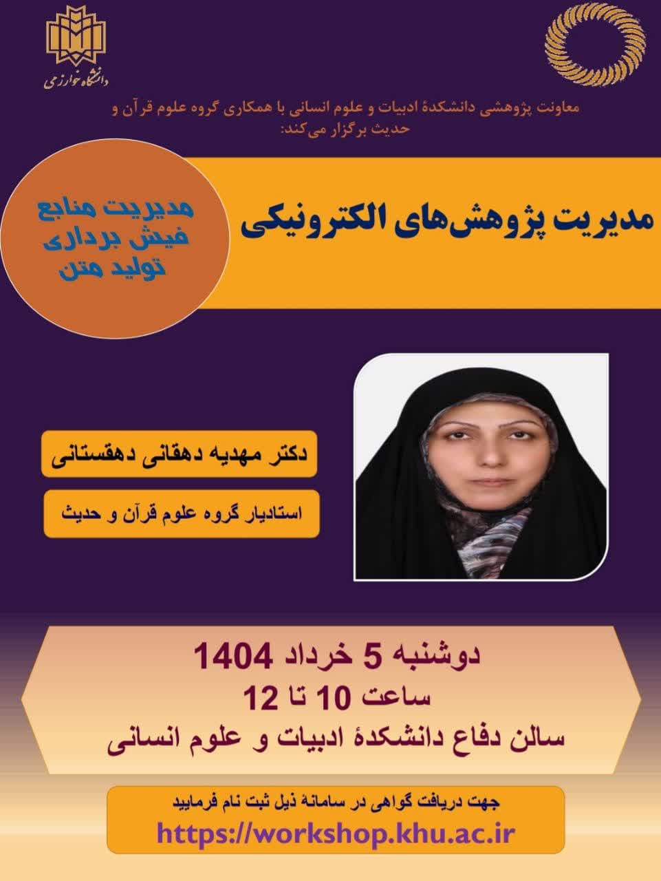 معاونت پژوهشی دانشکده ادبیات و علوم انسانی با همکاری گروه علوم قرآن و حدیث برگزار می‌کند: